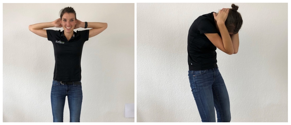 3. Kinn zur Brust senken: